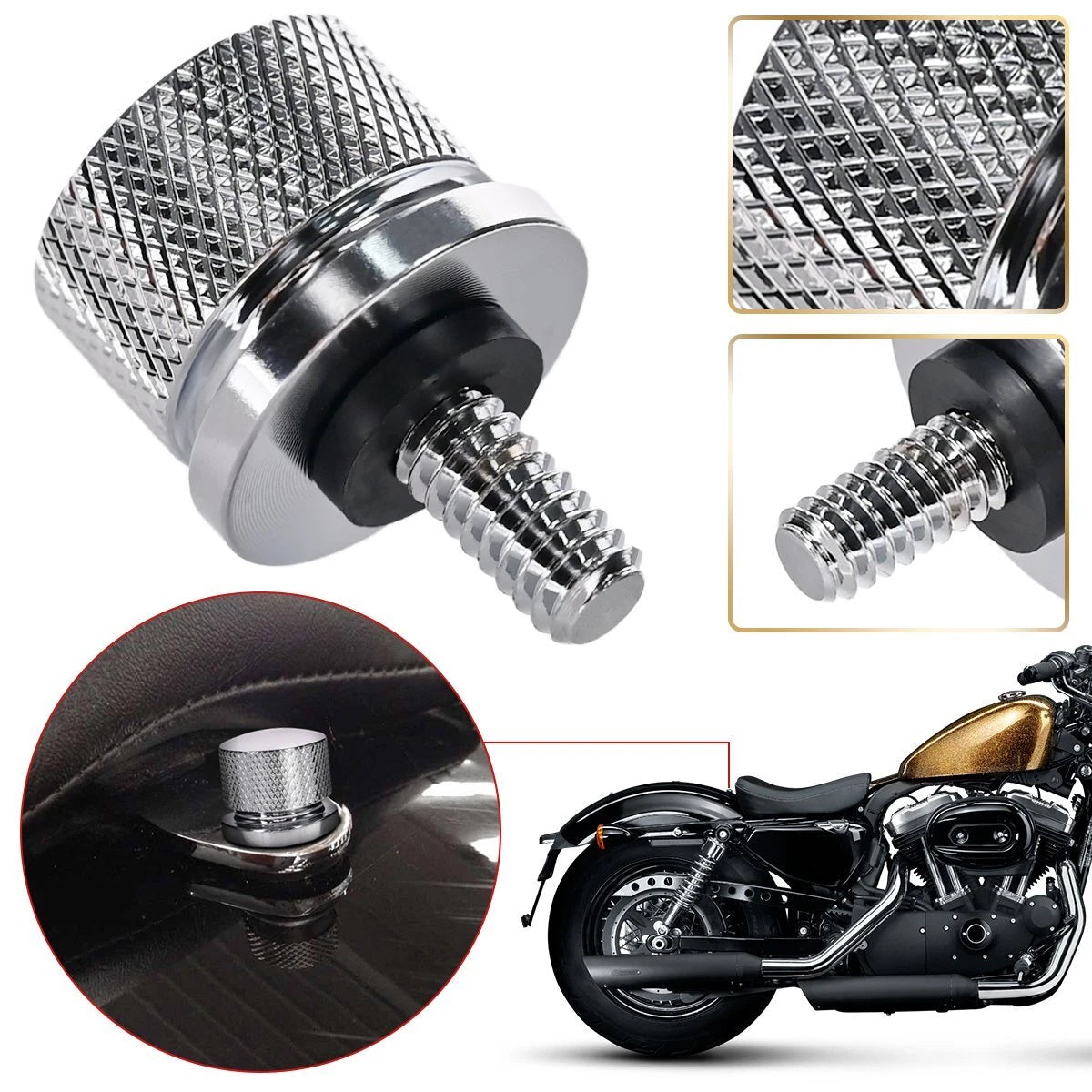 For Harley motorcycle, such as for Wide Glide, for Sportster, for Street Bob, for Road King, for Fat Bob, for Street Bob, for Softail, for Dyna, for Street Glide, for Road Glide, for Ultra Glide, for Touring and other model with 1/4-20 thread 1996-2015.