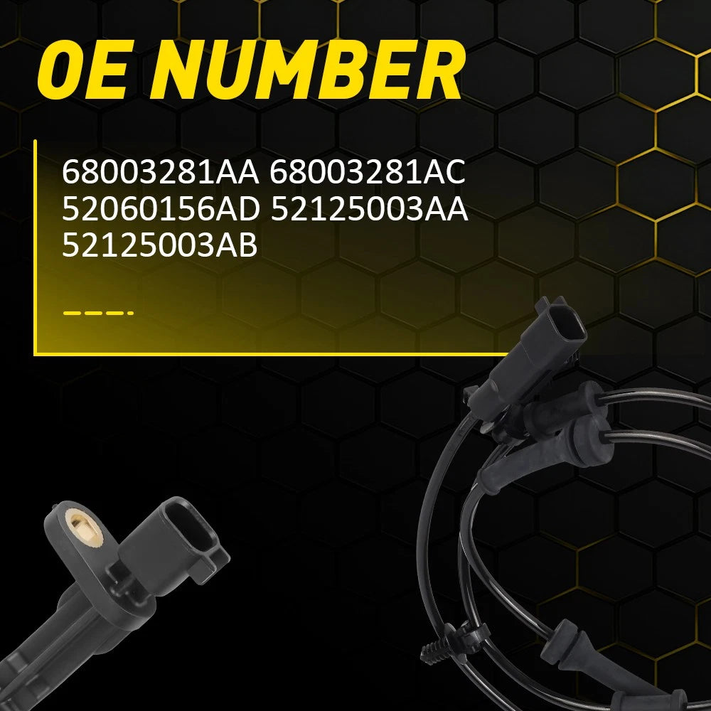 For Jeep Wrangler JK 2007-2017 ABS Wheel Speed Sensors Set Front+Rear Pack of 4 Fit for: Jeep Wrangler JK 2007-2017 Jeep Wrangler JK 2007-2017 2.8L ENS Diesel Jeep Wrangler JK 2011-2017 3.6L ERB Petrol Jeep Wrangler JK 2007-2012 3.8L EGT Petrol Specifications: OE Numbers: 68003281AA 68003281AC 52060156AD 52125003AA 52125003AB Product Material: Plastic Colour: Black Number of Plug Pins: 2 pins Placement on Vehicle: Front, Rear, Left, Right Packaging Weight: 352 g Item Length:8.8cm/3.46in Calbe Length:125cm/49.21in Features: *Advanced Technology Made with advanced technology to ensure accurate and reliable data transmission of wheel speed and driving status for driving safety. *All Tested before Shipment ABS wheel speed sensors undergo 100% test prior to shipment, guaranteeing high quality and reliable performance. *High Fitment Manufactured according to the parameters of the adapted parts and 1:1 moulding for a perfect match to your vehicle. *Excellent Material Using superior material to keep its long service life and durability. *Warm Notice Please double-check the part number and models in the description to guarantee it fits your vehicle before placing your order. Packaging Include: 2 x Front Wheel Speed Sensor( Left & Right ) 2 x Rear Wheel Speed Sensor ( Left & Right )