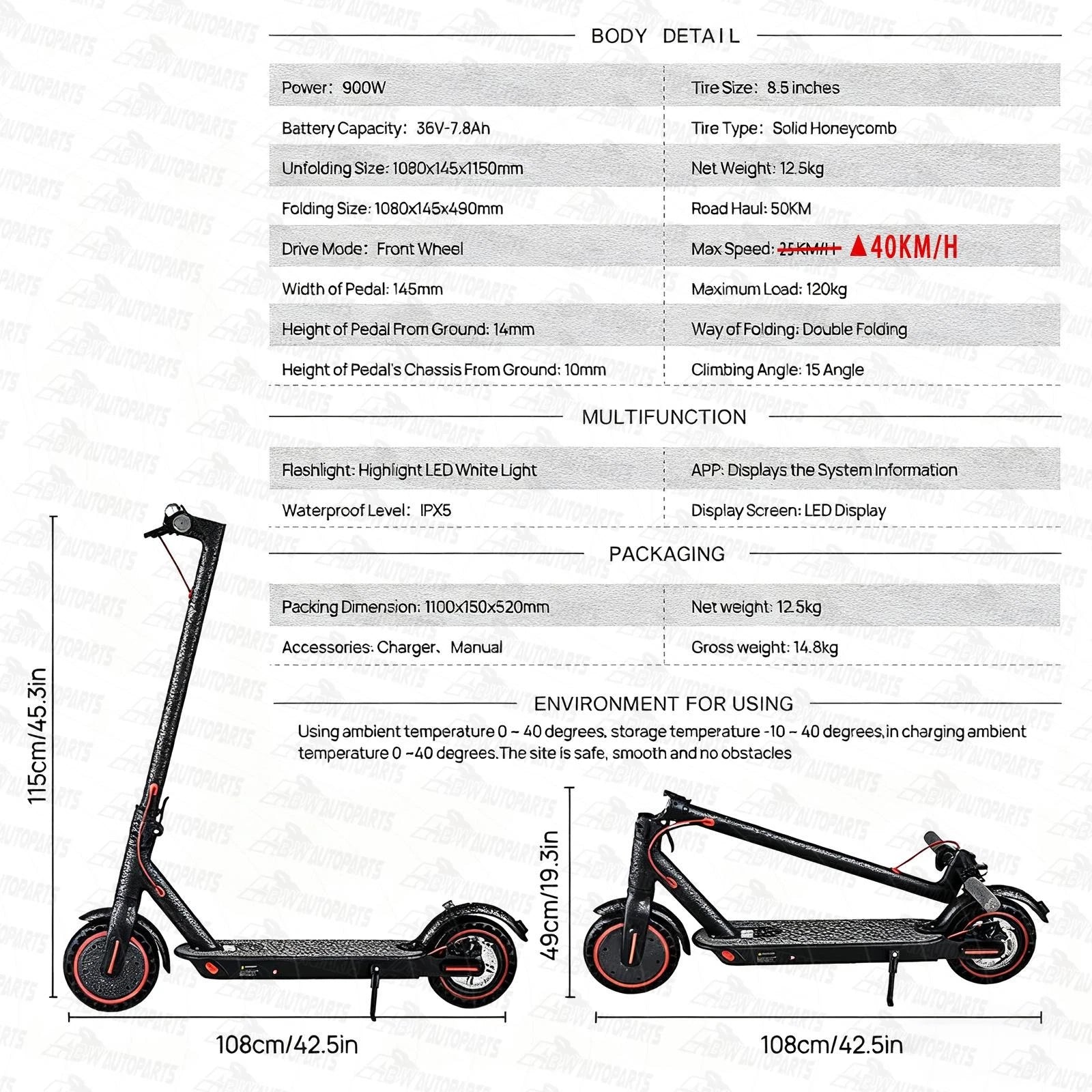 - •Wide Anti-Slip Deck: Extra-thick textured panel enhances grip and stability for safer riding.