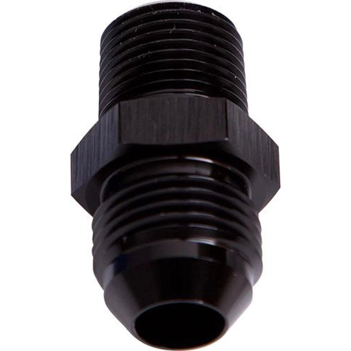 Aluminium NPT to Male AN Flare adapter. These adapters will convert from a Male NPT to male AN flare fitting without the need for washers.