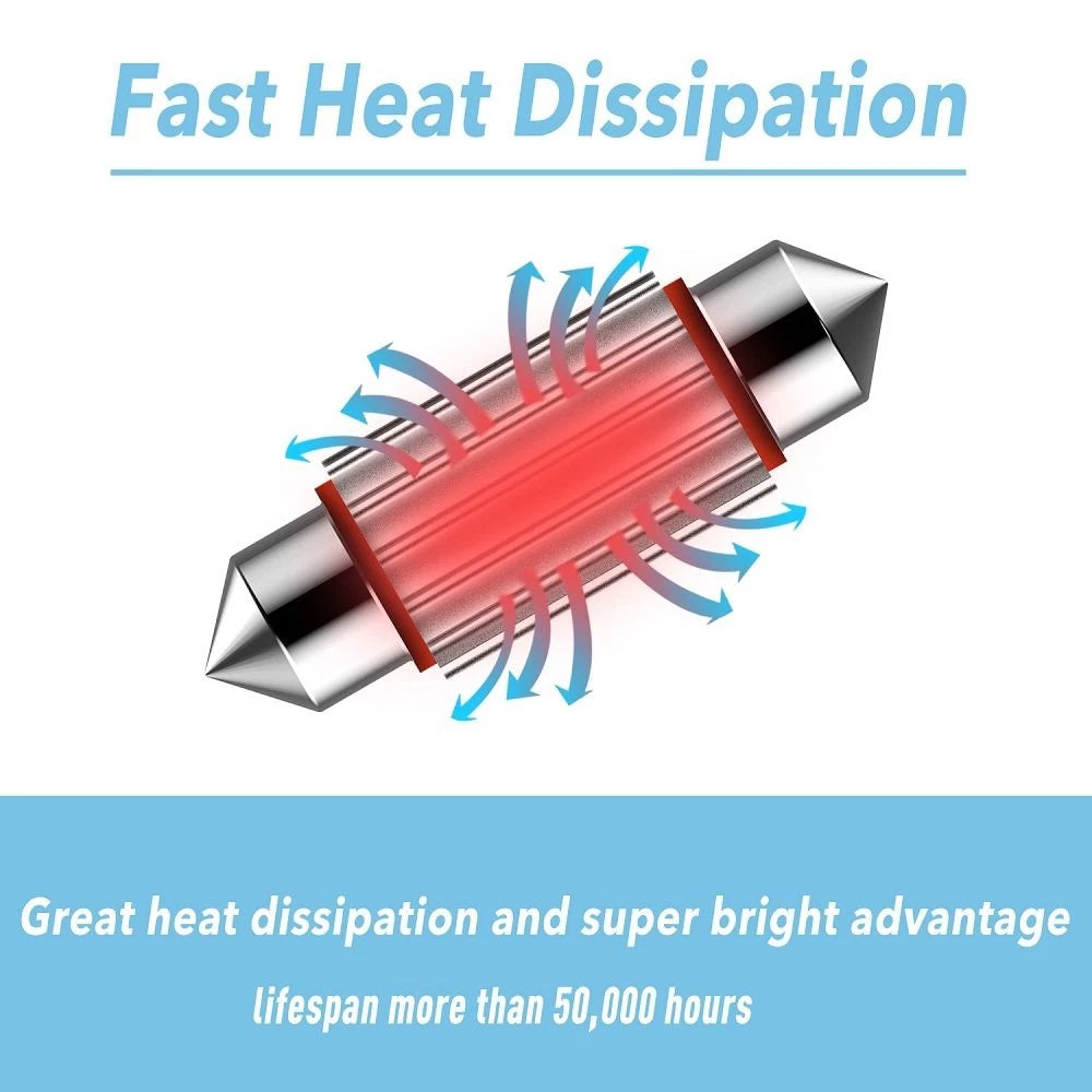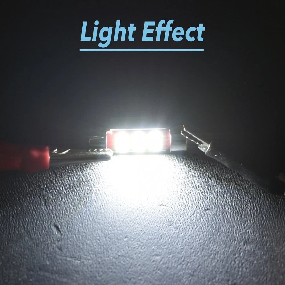 Ideal Replacement: Replacement for yellowish and dim 31mm original halogen bulb. Easy install, play, and plug. Only fits 12V vehicle.