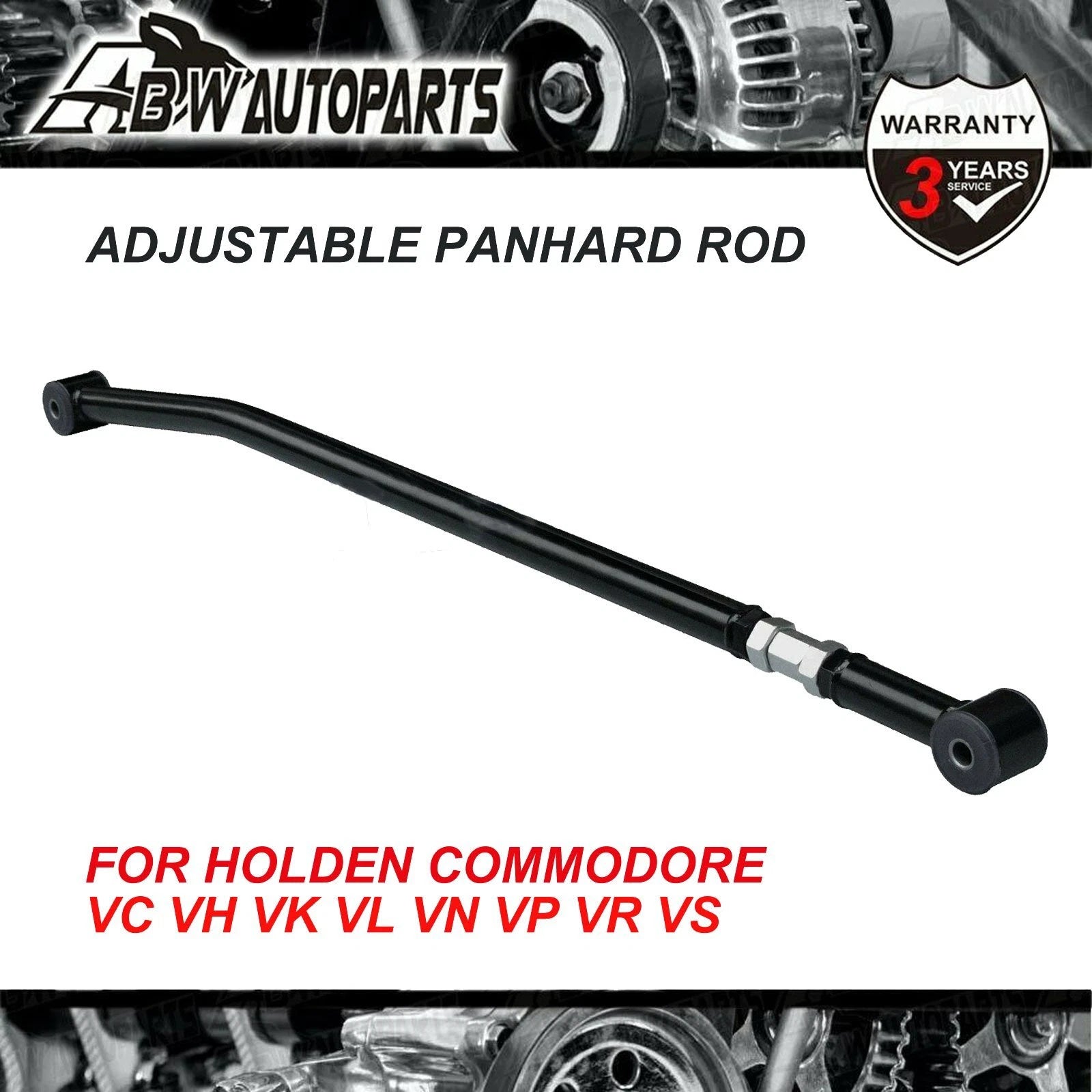 FOR Holden Commodore VB VC VH VK VN VP VR VS Adjustable Panhard rod Brand New ADJUSTABLE PANHARD ROD KIT Come complete with Bushes Suits For VB VC VH VK VL VN VP VR VS COMMODORE WITH SOLID REAR (ie, not IRS) *Picture is Actual Item . *Please advise of Year, Model , Engine Capacity during checkout *Note:Both ends have tube inside the bush, *please check yours before purchasing *Incorrect purchase will incur restocking fee and return postage at your expense Contents 1 x Adjustable Panhard Rod Kit . 2 x Bushes Specifications (3.3 kg) Warranty 3 Years Parts Warranty