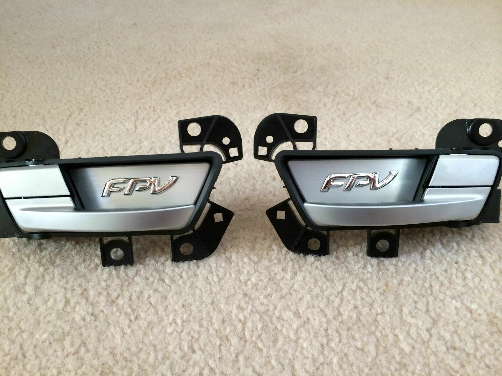 | " FPV " dress up interior door handle insert plate for FG series sedan or Ute This insert plate finished in aluminium that install on the internal door handles, simple item but it will make the whole FG interior look and feel more "complete", CHROME or BLACK on brushed aluminium finished. Easy to install, badge make to suit all factory FG series door handles, badge have double sized tapes on back, just make sure the surface are free of crease and silicone before stick the badge on. ( A drop of silicon glue also recommend )Auction for set of 2 badge, right and left hand side which will fits both front doors (ute) , if you want to complete 4 doors (sedan) please place your bid as 2 items . ( front door and rear door use the same size factory door handles ) |