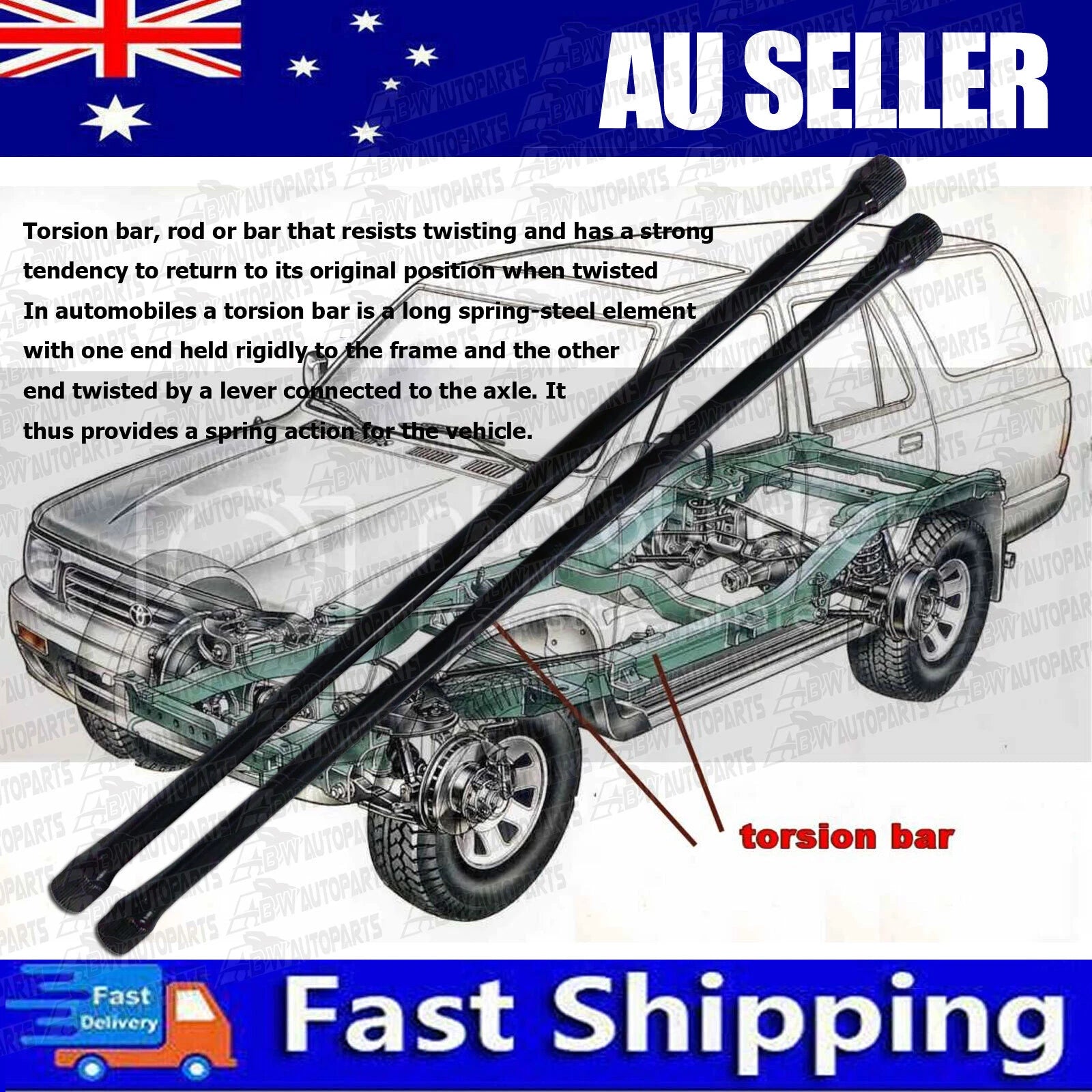Package Included: Pair Front Heavy Duty Torsion Bars Length:1160mm Comes with 2 Years Warranty! Payment Returns All rights reserved. |