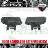 Pair REAR Black Outer LH+RH Door Handle For Nissan Pathfinder R51 2005-2013 Fitment: · For Nissan Pathfinder R51 Series 1 [2005.01~2010.01] · For Nissan Pathfinder R51 Series 2 [2010.01~2013.10] Description: Type: Door Handle Placement on Vehicle: Rear Left+Right Manufacturer Part Number: 1030514 Colour: Black Material: Plastic Features: -Aftermarket Product,Standard OEM Replacement Parts -Alternative to New Genuine Parts. Package Included: 1 Pair x Outer Door Handle(Left+Right)