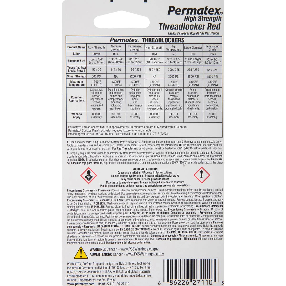 Permatex High Strength Threadlocker Red 10mlThe patent-pending GEL TWIST pin-point applicator puts the Threadlocker where you want it...on the part! Gel formula provides liquid-reliability without drips, globs, mess or waste. High strength threadlocker for heavy-duty applications. Especially well-suited for permanently locking studs and press fits. Adds 3,000 PSI holding power on slip and press fit assemblies. Replaces set screws and snap rings. Locks against vibration loosening. May require heat or special tools for removal.Suggested Applications: Cylinder block and rocker arm studs, ring gear bolts, frame bolts, shock absorber bolts; also ideal for vertical applications