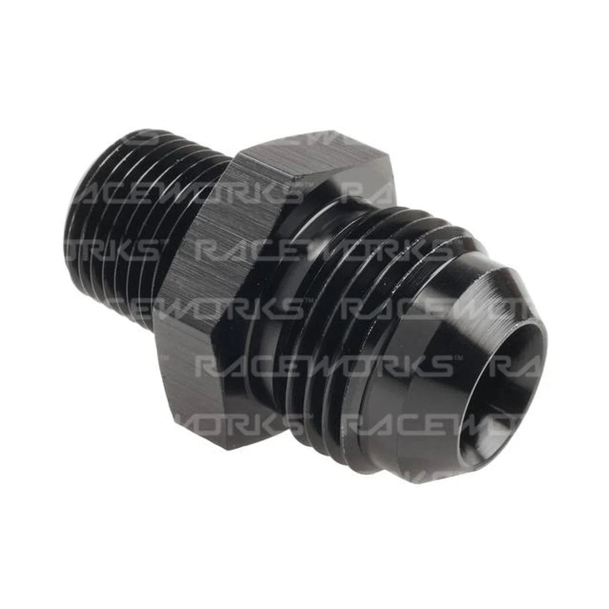 Raceworks An-10 Male Flare To Npt 3/8" StraightRaceworks Hose and Fittings are designed to withstand the most extreme performance applications, while looking simple and professional in any engine bay. All Raceworks 100, 200 and 400 series hose is compatible with E85, methanol, automotive oils, and coolants. Exact specifications and burst pressures are listed under each series. All Raceworks fittings and adapters are full flow, hardcoat anodised, and machined from high grade 6061 T6 billet aluminium.